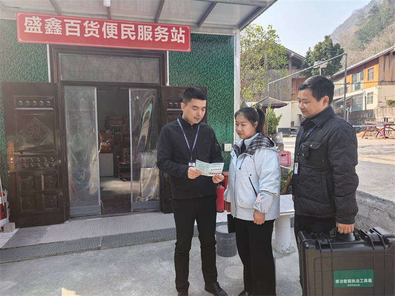 送完证的樊山和詹虎并没有急着离开,他们携带“烟草移动智能执法工具箱”走进代丹丹的店内,现场为她办理烟草许可证新办业务的相关后续事宜,讲解许可证使用规范、诚信守法经营等内容,真正实现“一次办、帮到底”的服务。